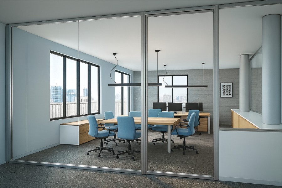 Glass office walls with modern design, natural light, and privacy make workspaces brighter, more open, and more professional.