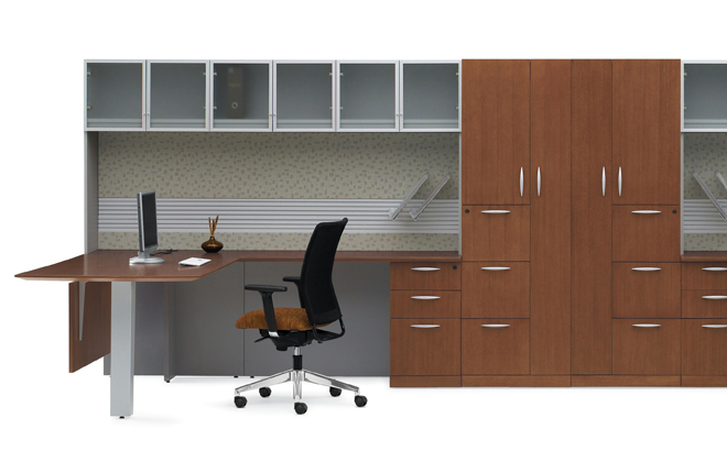 Experience a harmonious blend of style and utility that goes beyond your typical office setup. Dufferin achieves this by incorporating genuine wood veneer for work surfaces, drawer fronts, and cabinet fronts, while the chassis and cabinets boast a polished finish in either laminate or wood veneer.