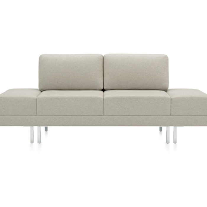 The armless modern lounge seating exudes a distinctive retro design, complemented by durable square metal legs that add to its contemporary flair. ML Park offers the choice of loose or secured back cushions, with an optional seamless seat, catering to various interior applications and individual preferences.